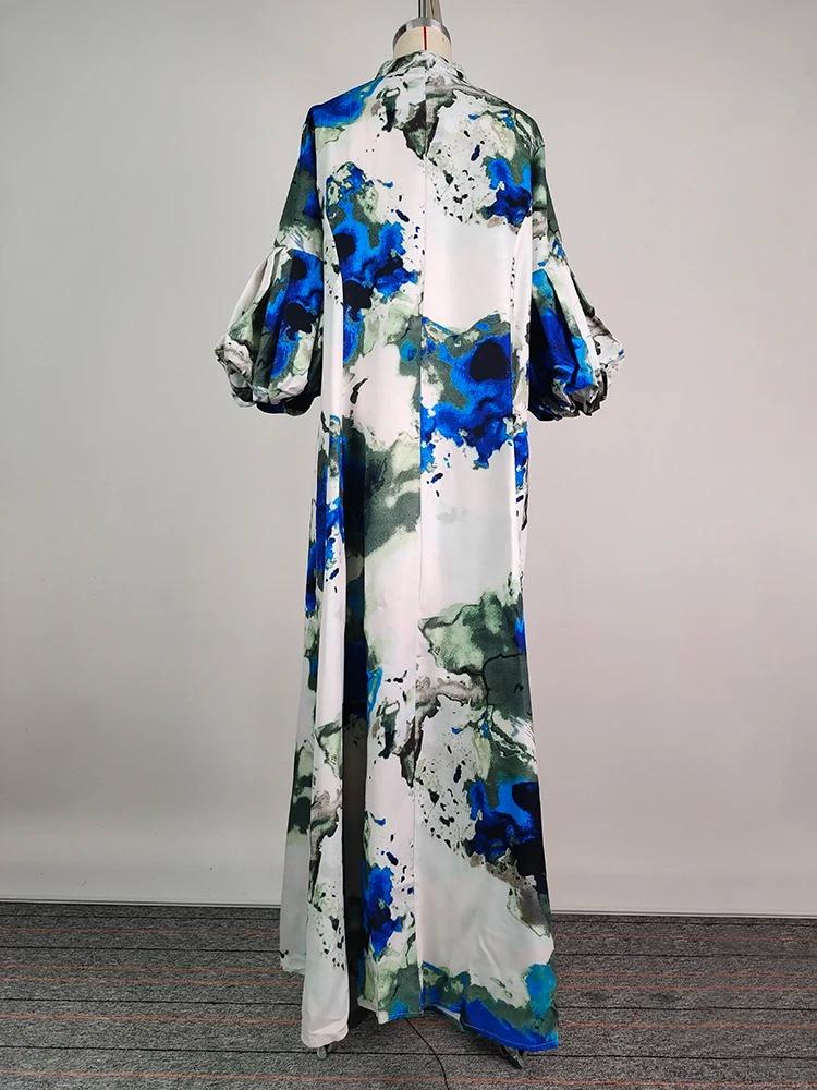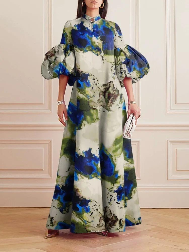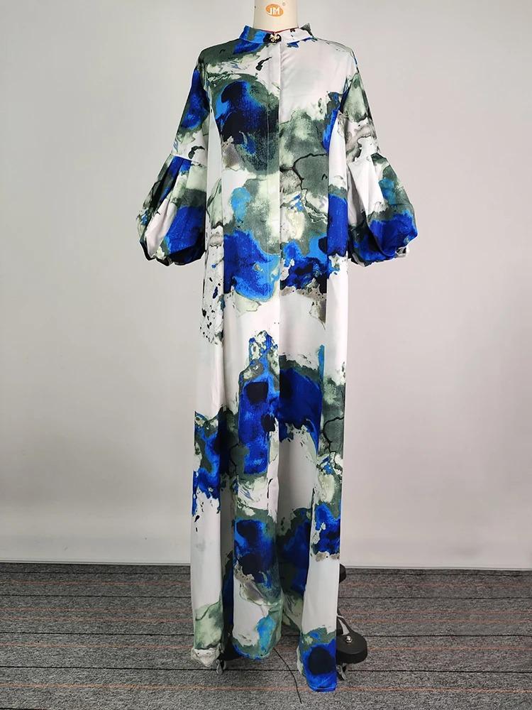 - الاسم: فستان نسائي بياقة قائمة وأكمام فانوس